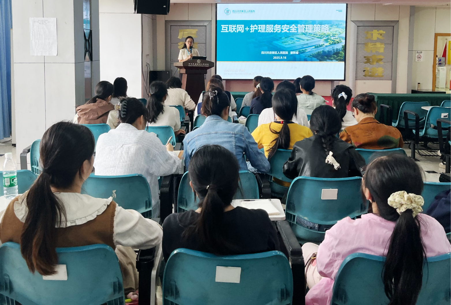 在专项理论培训会上,课程内容专业且丰富。四川天府新区人民医院护理部副主任谢林峻围绕“互联网+护理服务安全管理策略”展开讲解,为护理人员在保障患者安全方面提供了理论指导。
