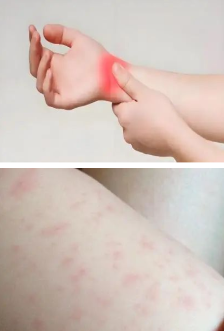 感染者多为轻症,一般感染后3~7天会发病,最典型的症状就是突发高热(39℃以上)、关节痛(手腕、脚踝最常见,可能痛到没法走路),常伴有皮疹,还可能伴有寒战、头痛、背痛、全身肌肉疼痛、恶心、呕吐等。多数人2~4周能好转,但少数人关节痛可能持续数月到数年。