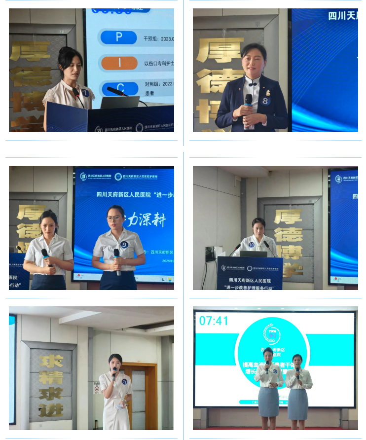 决赛采用“8分钟汇报+2分钟答辩”的形式,让选手对各自案例进行现场展示,全面呈现医院护理队伍在改善患者体验、提升护理质量、创新“互联网+护理服务”以及拓展专科特色护理服务模式等方面取得的显著成效。