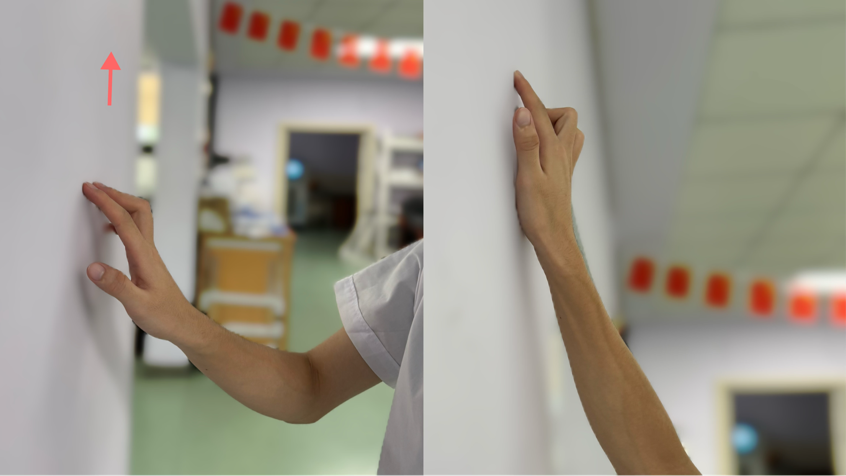 方法:面对墙壁,将患手贴墙,用手指“像小虫一样”爬上去,再爬下来。可以逐渐挑战更高,或尝试左右、斜线方向。