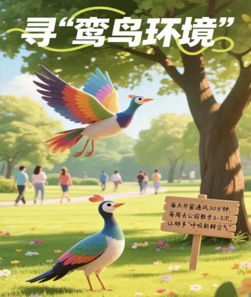 鸾鸟象征的“洁净空气”,在今天就是:避免长期处于粉尘多、化学气体浓的环境;有吸烟习惯的人尽早戒烟(吸烟是慢阻肺、肺癌的主要诱因);用加湿器调节室内湿度(湿度太低易导致鼻黏膜干燥、咳嗽)。