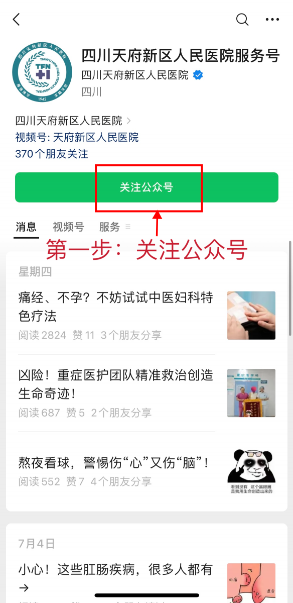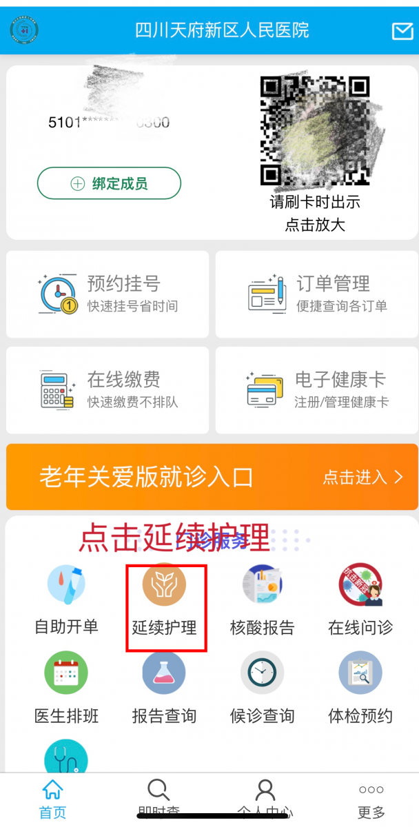 如果您或您的家人有上门护理需求,欢迎关注“四川天府新区人民医院服务号”公众号,点击“延续护理”预约(预约步骤如下图),我们将竭诚为您提供专业、贴心的护理支持!