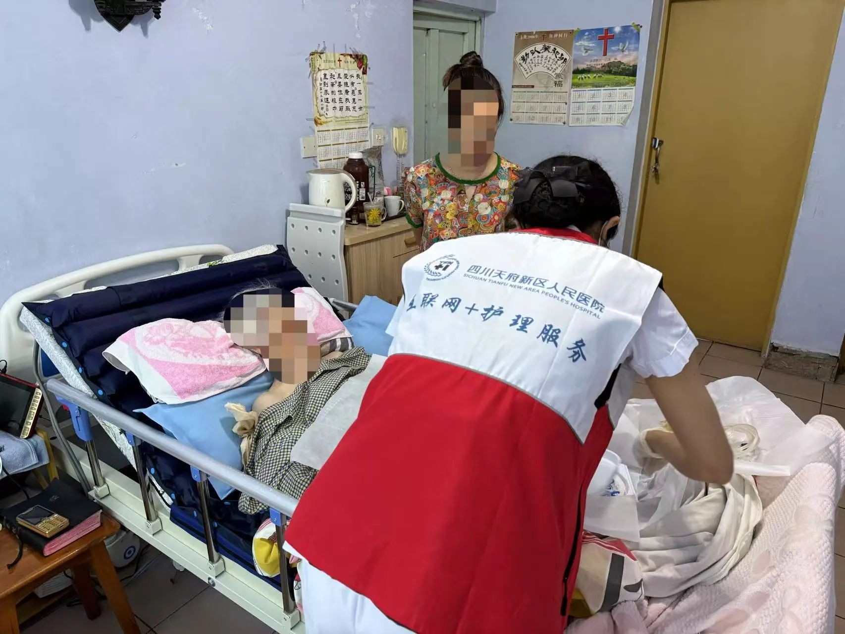 陈奶奶因股骨骨折长期卧床,行动不便,留置尿管后,更换尿管需频繁往返医院,不仅耗时耗力,还增加老人的身体负担,家属因缺乏专业护理知识,更是忧心忡忡。就在家属一筹莫展之际,他们通过四川天府新区人民医院公众号了解到“互联网+上门护理服务”,抱着试一试的心态进行了预约。