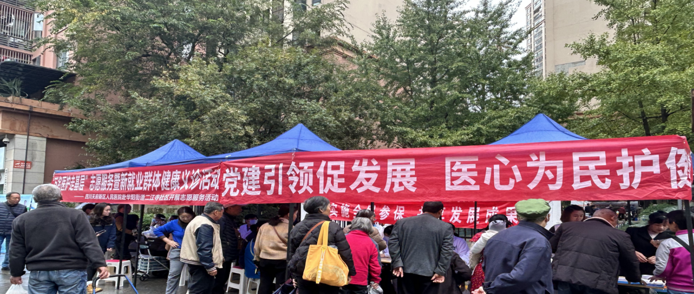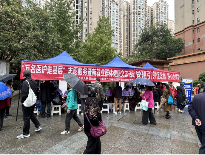 2025年11月7日上午,医院党委与华阳街道二江寺社区党委在佳兆业·君汇上品四号门联合举办了“党建引领促发展医心为民护健康”暨新就业群体健康义诊活动。医院党委委员、纪委书记李凤同志带领神经外科、烧伤创面修复科、耳鼻咽喉头颈外科、疼痛科、消化内科、心血管内科、老年医学科/内分泌、眼科等15余名骨干组成志愿队参加了此次活动。此次公益活动,共免费体检200余人、测血压100余人、测血糖100余人、健康宣传200余人、医保政策宣传100余人,得到二江寺社区人民群众的肯定和好评。