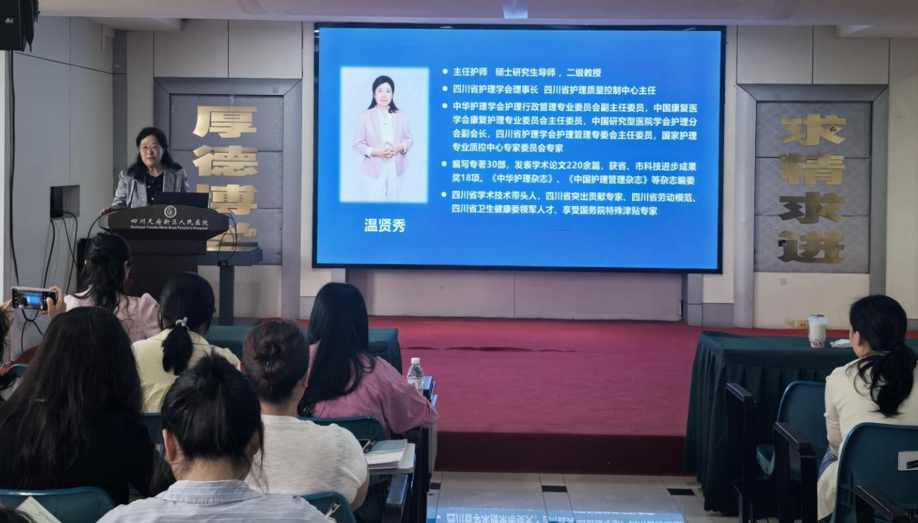 本次培训聚焦护理质量管理与专业能力提升。四川省护理质量控制中心主任温贤秀、四川大学华西天府医院张雨晨2位专家,围绕“护理质量改进目标”“护理专业能力提升”等核心主题开展专题讲座,聚焦临床护理管理领域的新知识、新理念与新方法,共同探讨区域护理质量科学改进路径。